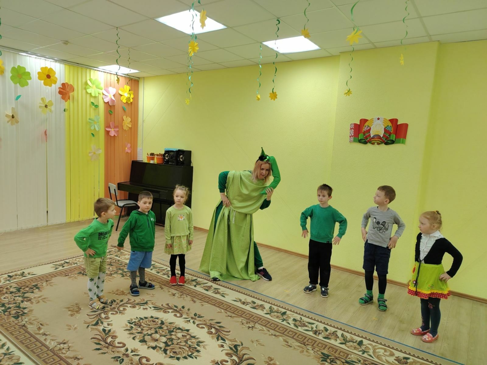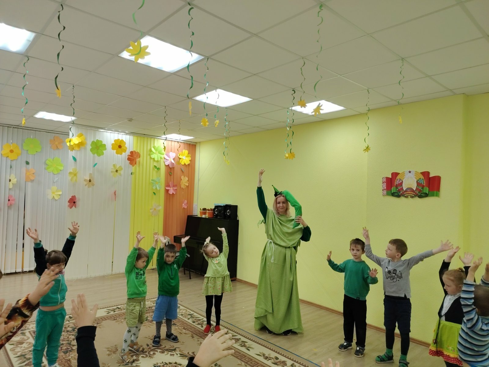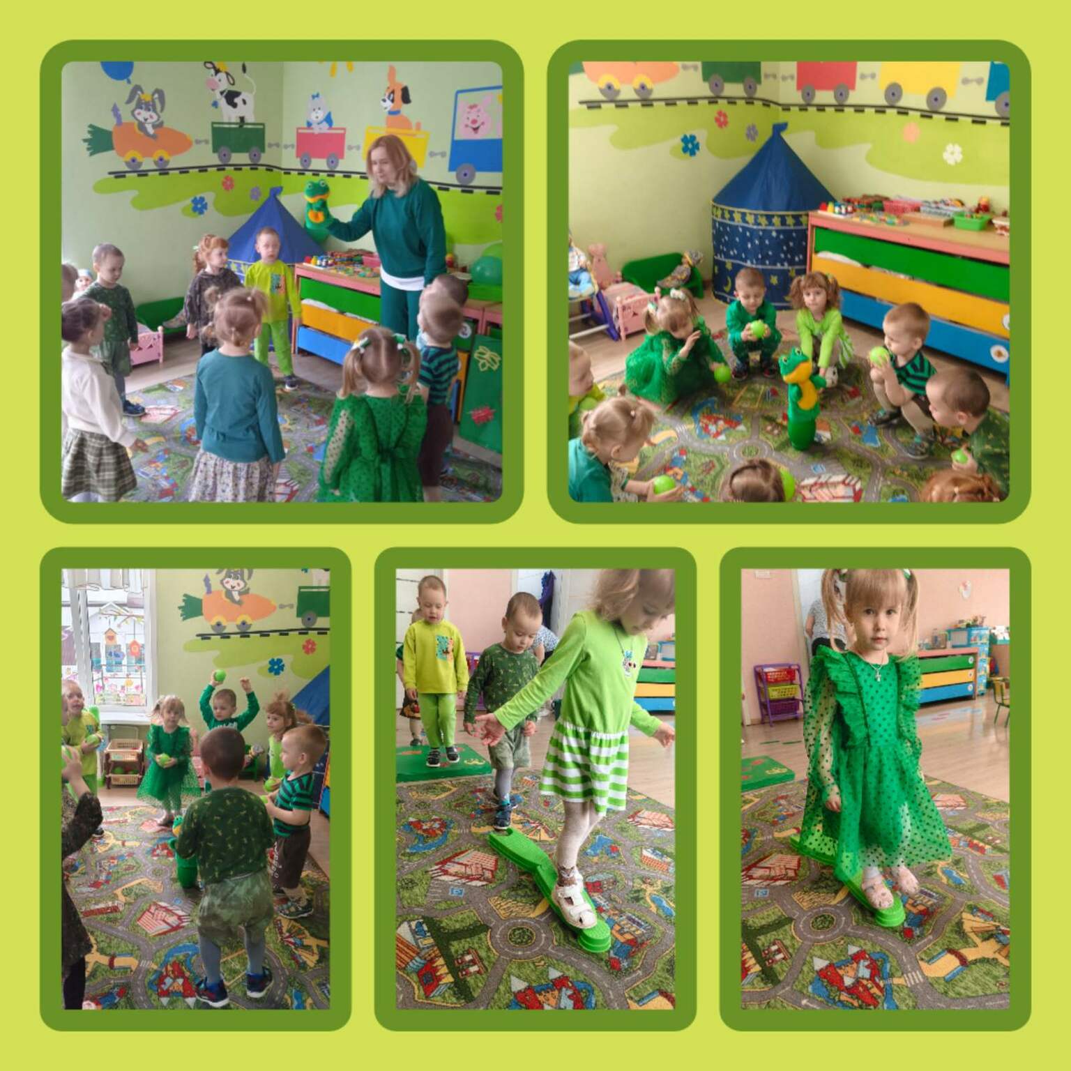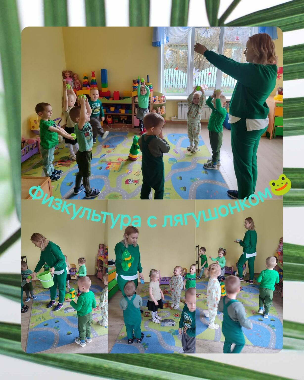 Одним из главных событий стала физкультура под девизом «В здоровом теле, зелёный дух» с лягушонком. Дети с удовольствием выполняли упражнения, повторяя за своим зелёным другом.