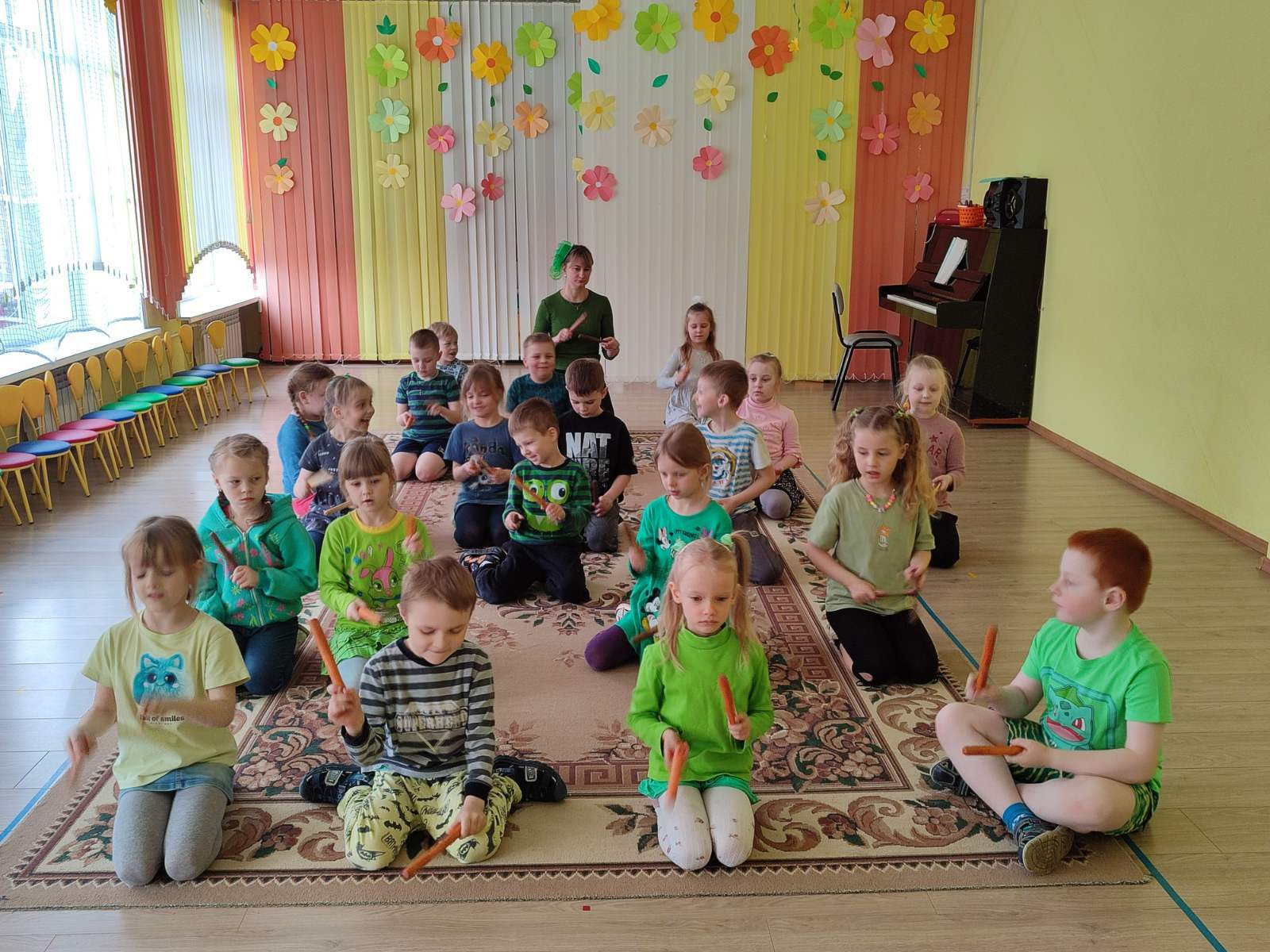 - Игра на музыкальных инструментах: исполняли «Зелёную песенку», погружаясь в мир музыки.